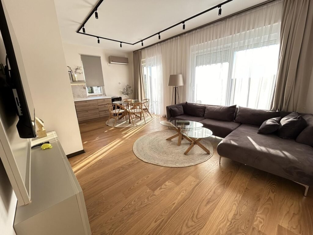 Na prodaju luksuzno namješten dvosoban stan u Reževićima. Stan ima 76 m2, a pozicioniran je na prvom spratu. Strukturu stana čine: ulazni hodnik, dnevna soba sa trpezarijom i kuhinjom, dvije spavaće sobe, kupatilo i terasa. Stan je veoma prozračan, komforan i kompletno je opremljen svim potrebnim sadržajima za udoban život. Stan se nalazi na odličnoj lokaciji, udaljen 350m od mora. Prodaje se namješten. Prodajna cijena je 240.000,00e. U cijenu je uključeno i jedno garažno mjesto.