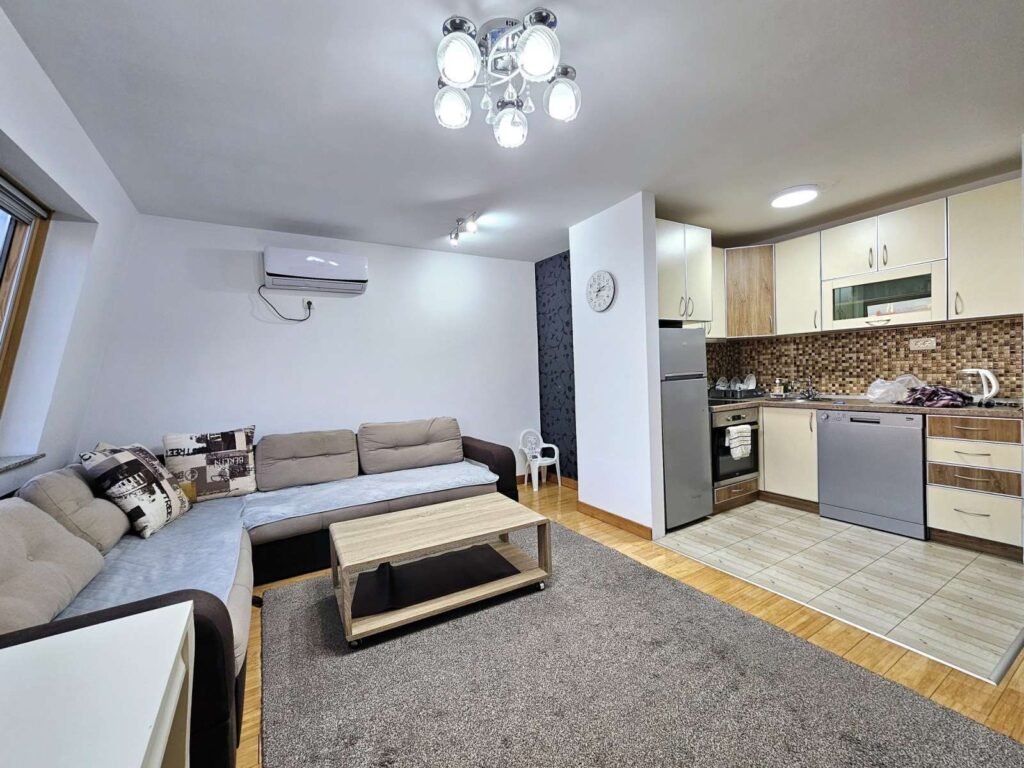 Za izdavanje namješten dvosoban stan na Zabjelu, u zgradi u kojoj je lokal Time out. Stan ima 82 m2, a pozicioniran je na 5. spratu. Veoma je komforan i kompletno je opremljen svim sadržajima neophodnim za ugodan boravak u njemu. Izdaje se na duži period uz obavezan depozit. Visina zakupa je 700e mjesečno.