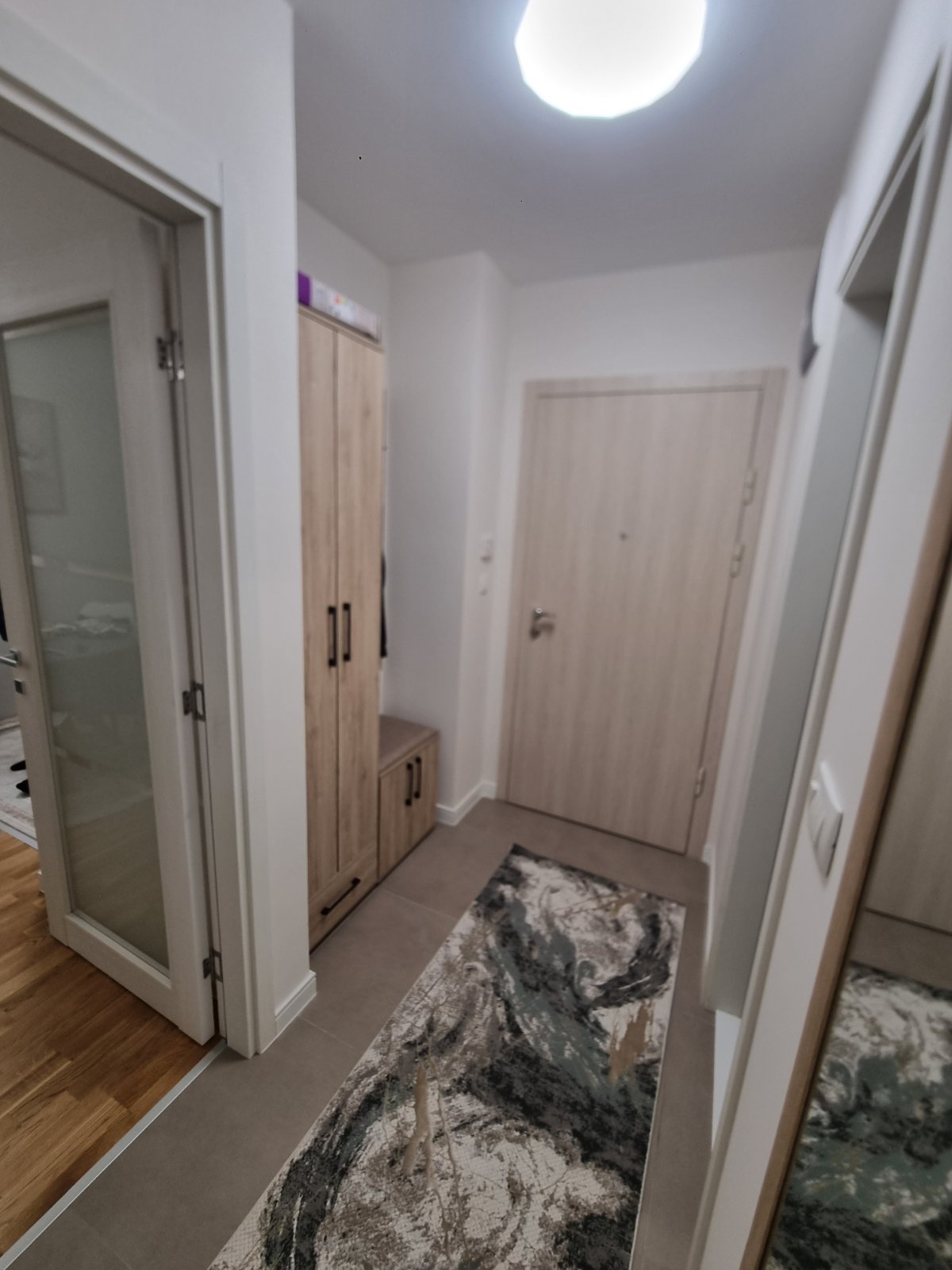 Za izdavanje namješten jednosoban stan na Pobrežju, ulica 4. jula. Stan ima 42 m2, a pozicioniran je na 3. spratu zgrade koja posjeduje lift. Nov je i kompletno je opremljen svim neophodnim sadržajima. Izdaje se na duži period uz obavezan depozit. Visina zakupa je 500e mjesečno.