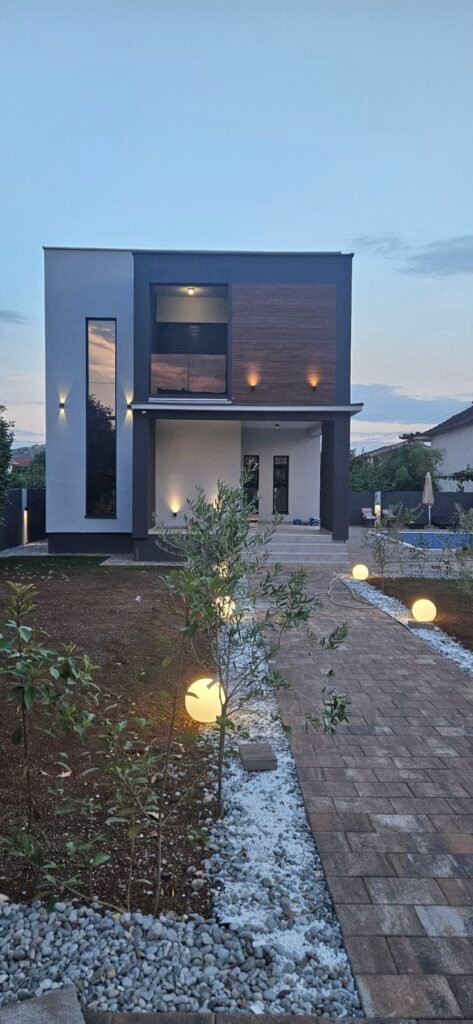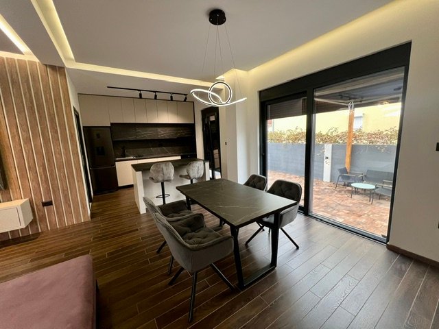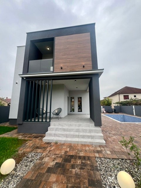Na prodaju luksuzno opremljena kuća u Donjoj Gorici. Kuća ima 150 m2, a nalazi se na placu površine 800 m2. Po strukturi je trosobna, veoma lijepog rasporeda. Na prizemlju kuće nalazi se prostrani dnevni boravak sa trpezarijom, potpuno opremljena kuhinja i kupatilo. Na prvom spratu su tri spavaće sobe, kupatilo, soba sa đakuzijem i balkon. Kuća je nova, neuseljavana i kompletno je opremljena modernim i novim namještajem. Posjeduje i bazen dimenzija 4×8 m, kao i lijepo uređeno dvorište. Prodajna cijena je 450.000,00e.