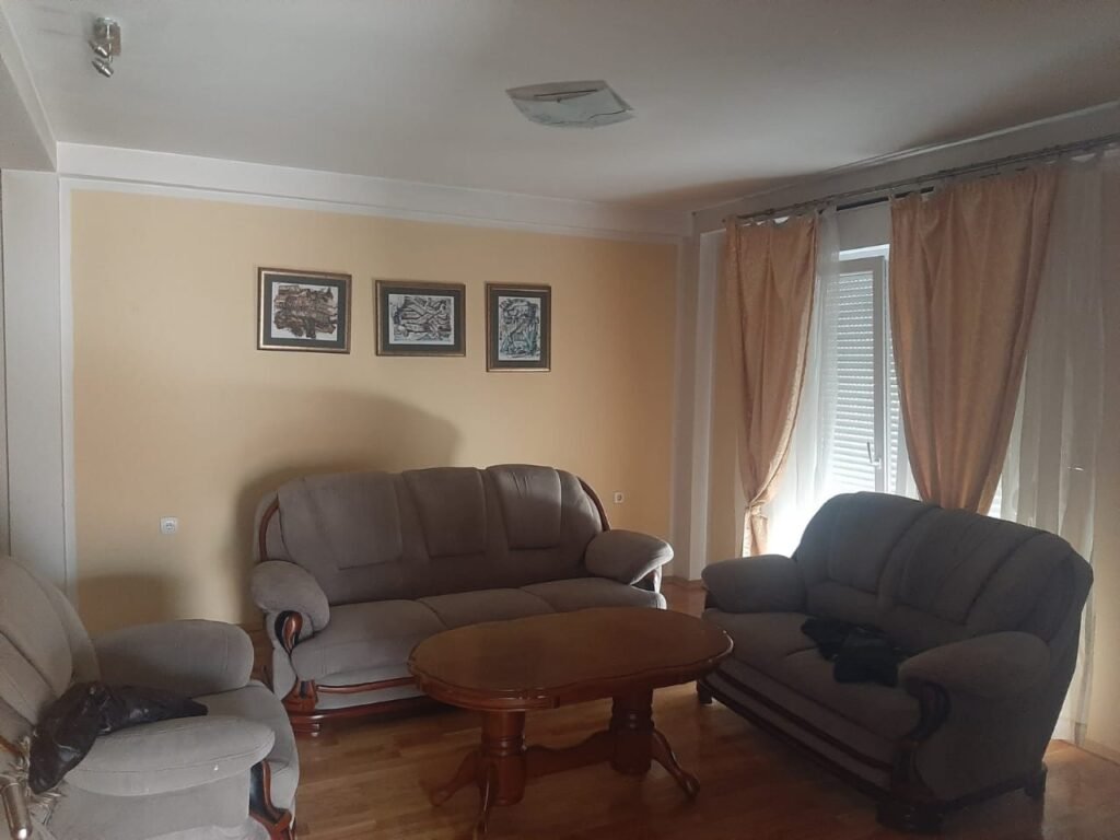 Na prodaju kuća od 230 m2 sa garažom, udaljena 900 metara od hotela Onogošt u Nikšiću. Struktura kuće: na prvom spratu se nalazi dnevna soba sa trpezarijom, kuhinja, hodnik, veliko kupatilo i terasa od 26 m2. Na drugom spratu se nalaze dvije spavaće sobe, hodnik, apartman koji ima svoj mali hodnik, kupatilo i zasebna terasa. Prodajna cijena kuće je 160.000,00e.