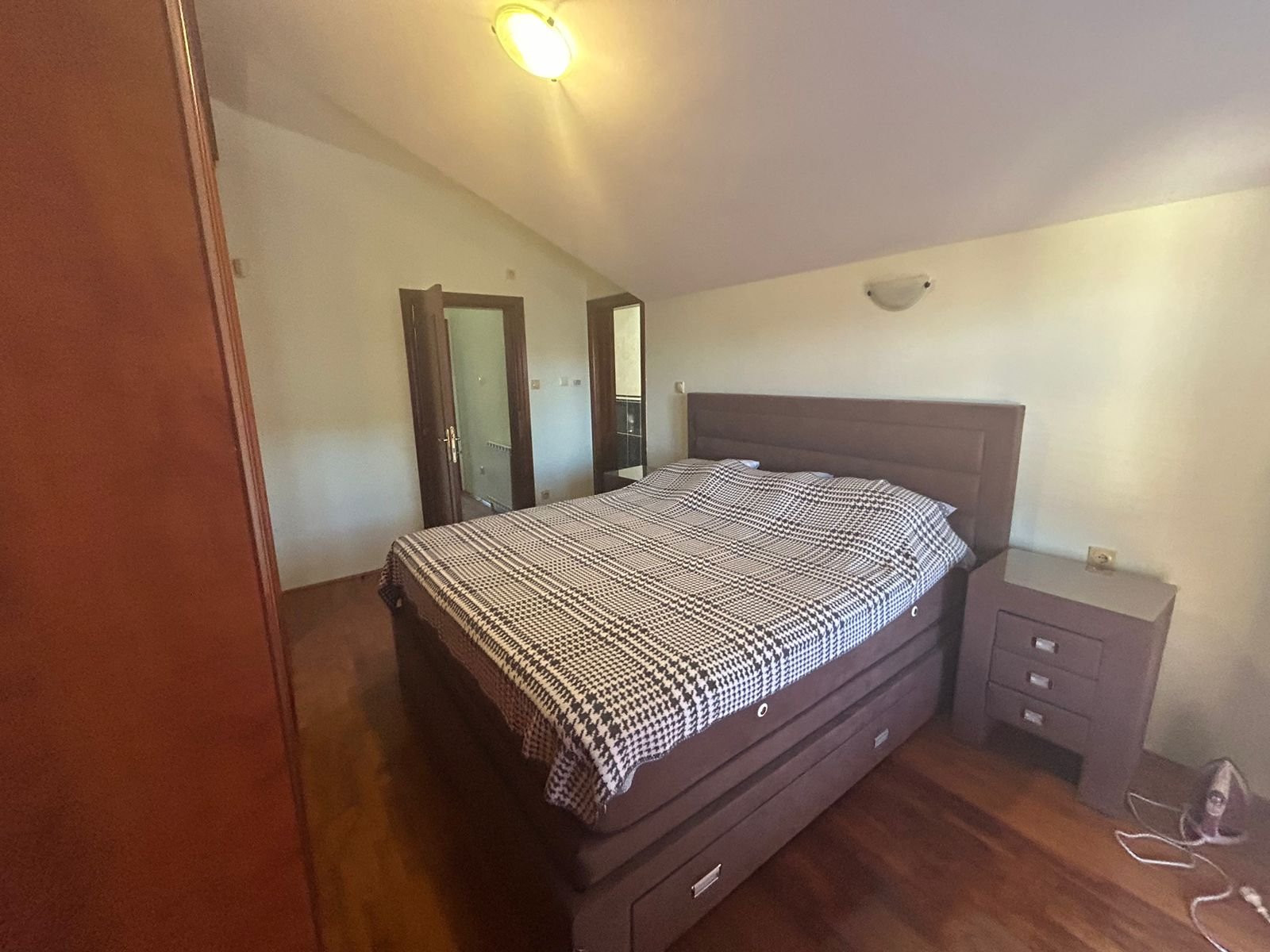 Za izdavanje namještena kuća u Zagoriču. Kuća ima 200 m2, a nalazi se na placu površine 400 m2. Strukturu kuće čine: ulazni hodnik, dnevna soba, trpezarija i kuhinja, 4 spavaće sobe, dvije ostave, 3 kupatila, tri terase i garaža. Kuća je kompletno opremljena, posjeduje multisplit sistem i centralno grijanje. Izdaje se na duži period uz obavezan depozit. Visina zakupa je 2300e mjesečno.