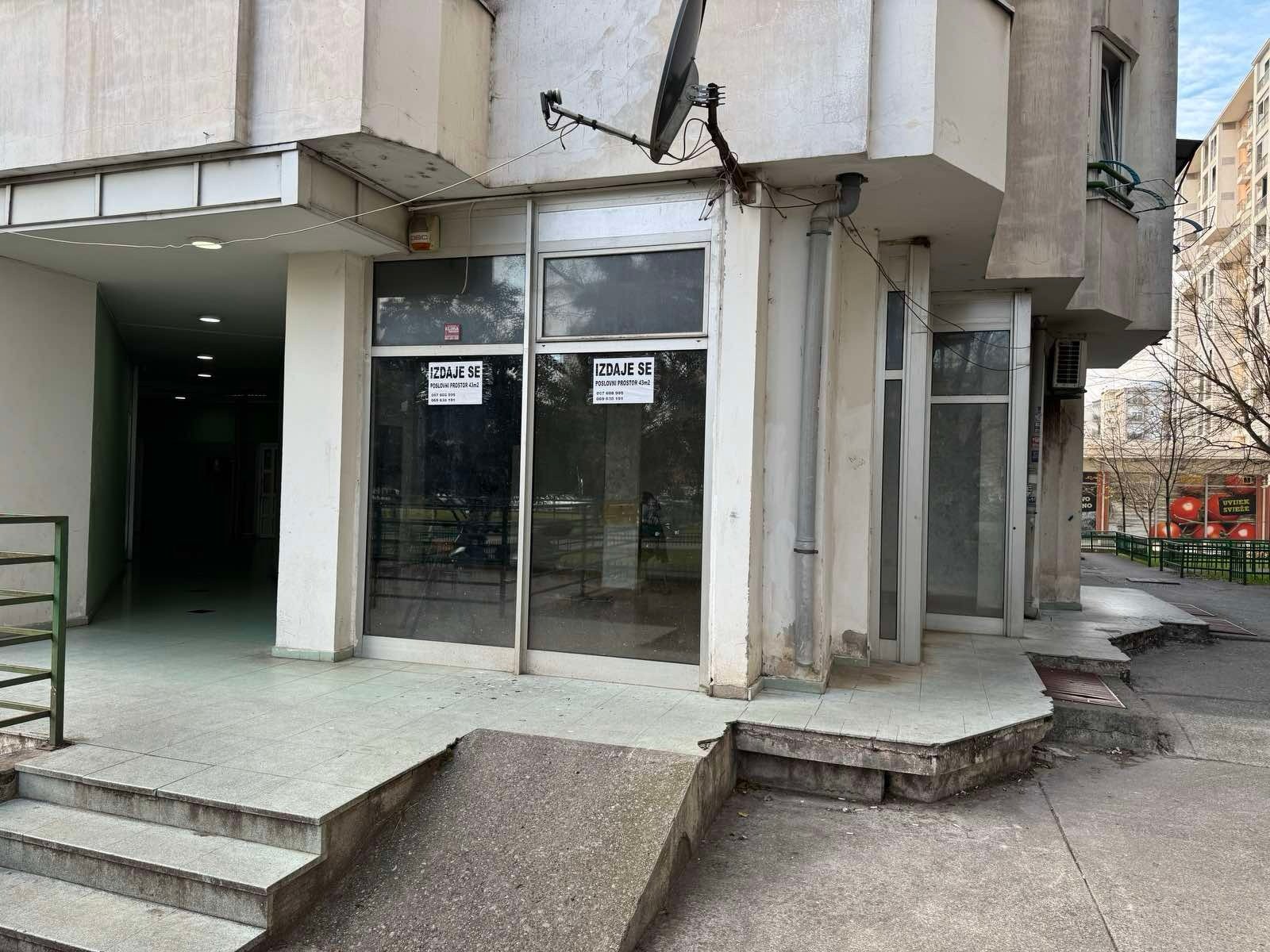 Za izdavanje poslovni prostor u Bloku 6, Ruske kule. Prostor je površine 43 m2, a smješten je na prizemlju zgrade. Izdaje se na duži period uz obavezan depozit. Visina zakupa je 500e mjesečno.