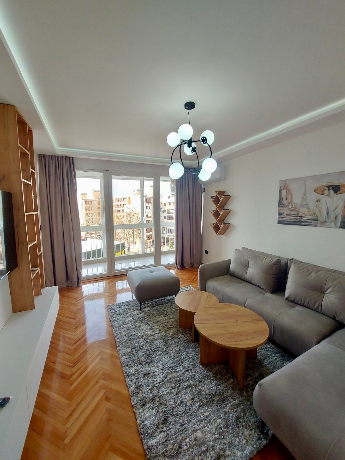 Izdaje se kompletno namješten dvosoban stan u Ulici Ivana Vujoševića, Preko Morače. Stan ima 90m2 i pozicioniran je na prvom spratu. Struktura stana sastoji